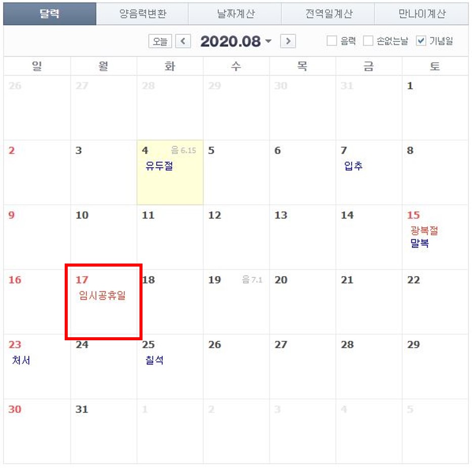 오는 8월 17일 월요일은 임시공휴일입니다. 8월 15일 광복절이 토요일이라 많은 분들이 실망했던 차에 너무나 좋은 뉴스였을 것이라 생각됩니다. 저같은 직장인들에게도 임시공휴일 지정 뉴스는 눈이 반짝거릴수 밖에 없는 매우 좋은 소식이죠. 최근 좋은 일이 별로 없었다가 정부에서 저같은 사람들에게 기쁨을 주기도 하네요. 오늘이 8월 17일 임시공휴일에 대한 이야기를 해보려고 합니다.