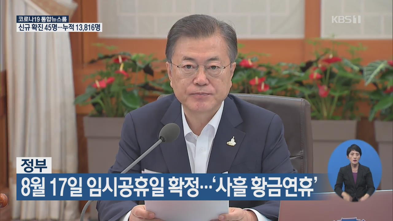 8월 17일 임시공휴일은 어떤과정으로 결정이 된 것인지 기사를 찾아봤습니다. 정세균 국무총리는 지난 7월 19일 임시공휴일 지정을 이야기 했었습니다. 그 얘기가 있고 난 뒤 사흘 뒤 7월 21일 문재인 대통령은 청와대에서 국무회의를 주재했습니다. 국무회의에서 “오늘 국무회의에서 8월 17일을 임시공휴일로 지정하는 안을 결정한다”고 하였습니다. 물론 이렇게 결정한 것이 8월 15일 광복절이 토요일인 것도 아마 영향을 주었다고 생각합니다.