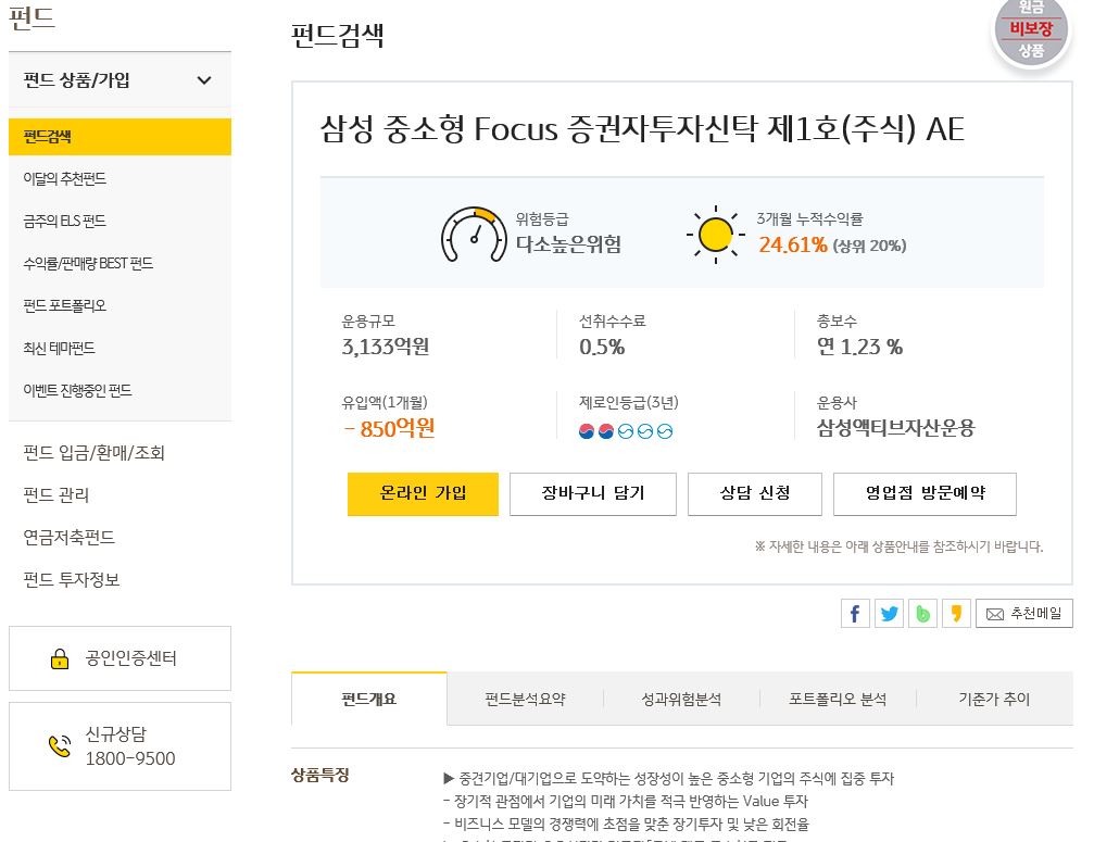 이건 일반적인 기준입니다. 모든 펀드 상품이 꼭 그런 것은 아닙니다. 국민은행에서 펀드 상품을 한번 보겠습니다.