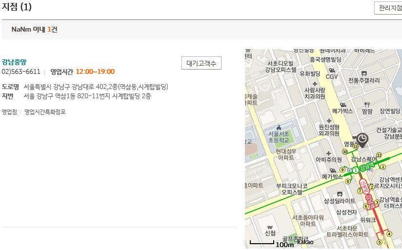 강남중앙지점을 검색해봤습니다.