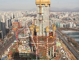 -> 해당현장은 외주부 55층 이상 시공 후 32층 아웃리거 용접접합 진행
